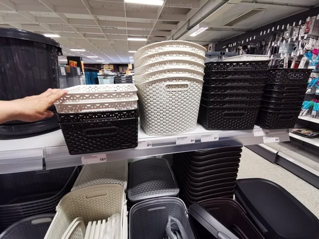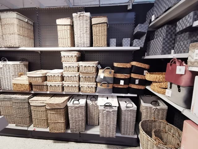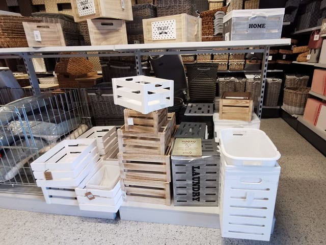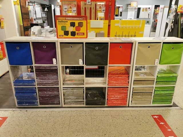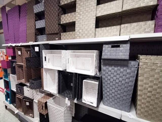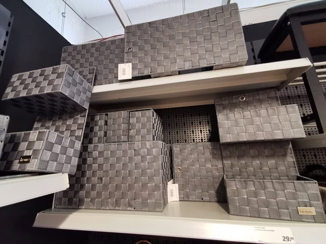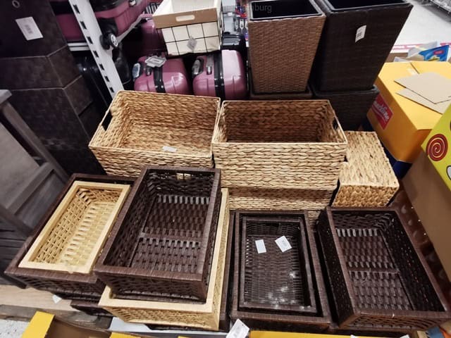 Boxen, Kisten, Körbe, aus Stoff, Canvas, Pappe, Geflecht, Plastik, Naturmaterialien, Draht, Metall